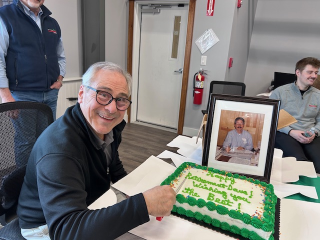 Team Hancock recently celebrated the incredible 32-year career of Dave Benedix, who first joined the company in May of 1994. Joining Dave at his retirement celebration were fellow Kennebunk teammates, employees from around the company, and representatives from one of his top accounts—Great Falls Construction. Plus, Dave received a special message from Executive Chairman, Kevin Hancock.